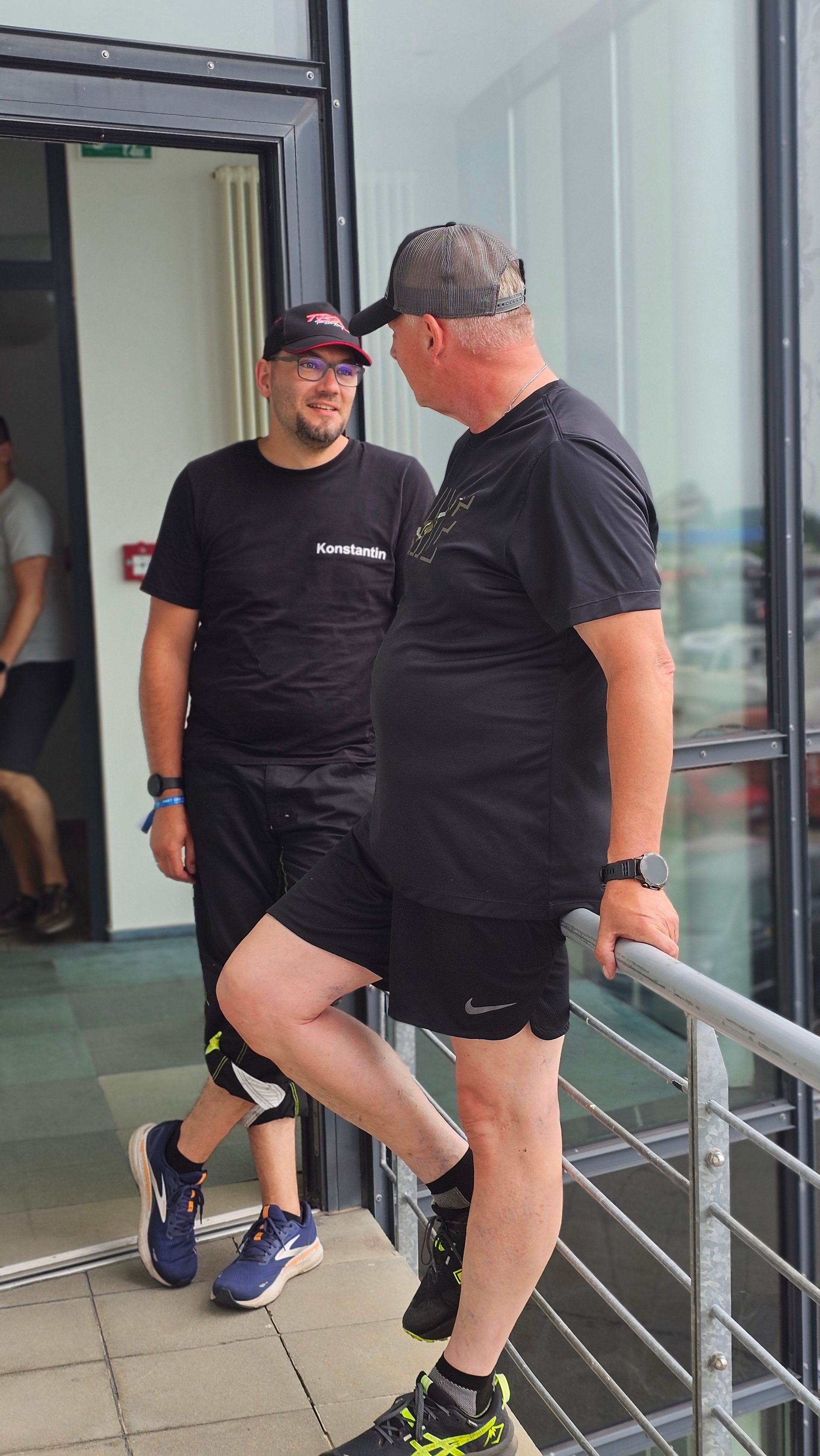 Während Bibi mit Konstatin zur Papier. und technischen Abnahme unseres Boliden fuhren, begann der Rest des Teams mit dem Aufbau. Aufgrund der Platzverhältnisse klappte alles recht schnell, so dass die Pavillons bereits standen, als die beiden von der Abnahme zurück waren. Also alles Just in Time und auf den Punkt. Schnell in die Unterkunft, denn Morgen ist bereits um 7:50 Uhr Fahrerbesprechung. Das heißt für alle, dass wir morgen früh bereits um 7:15 Uhr im Fahrerlager sein müssen.